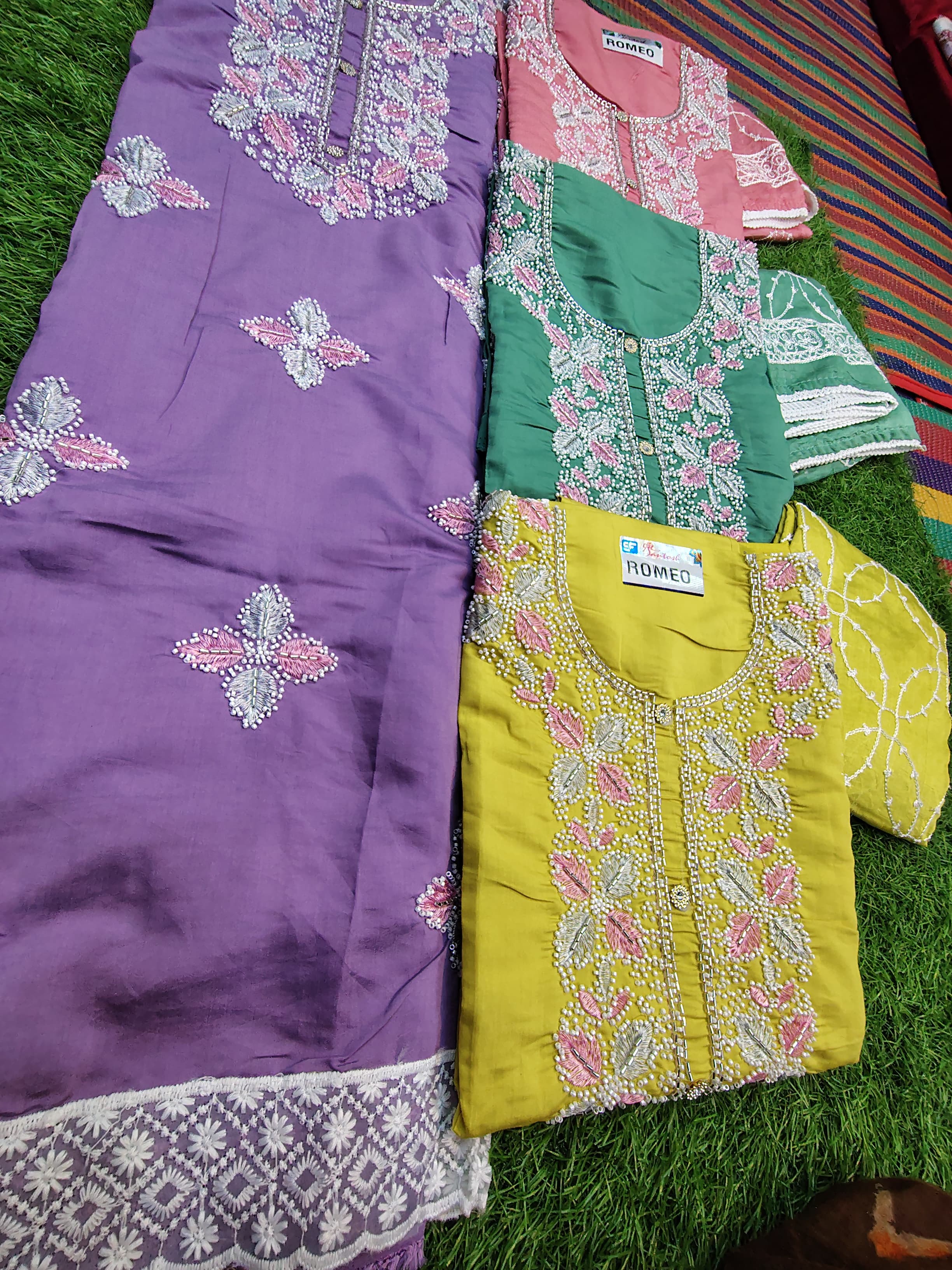 - ✔ 🌸 Beautiful Embroidered Cotton Suit Set 🌸 ✨ Design: Elegant moti (pearl) embroidery with light, classy work – simple yet premium look