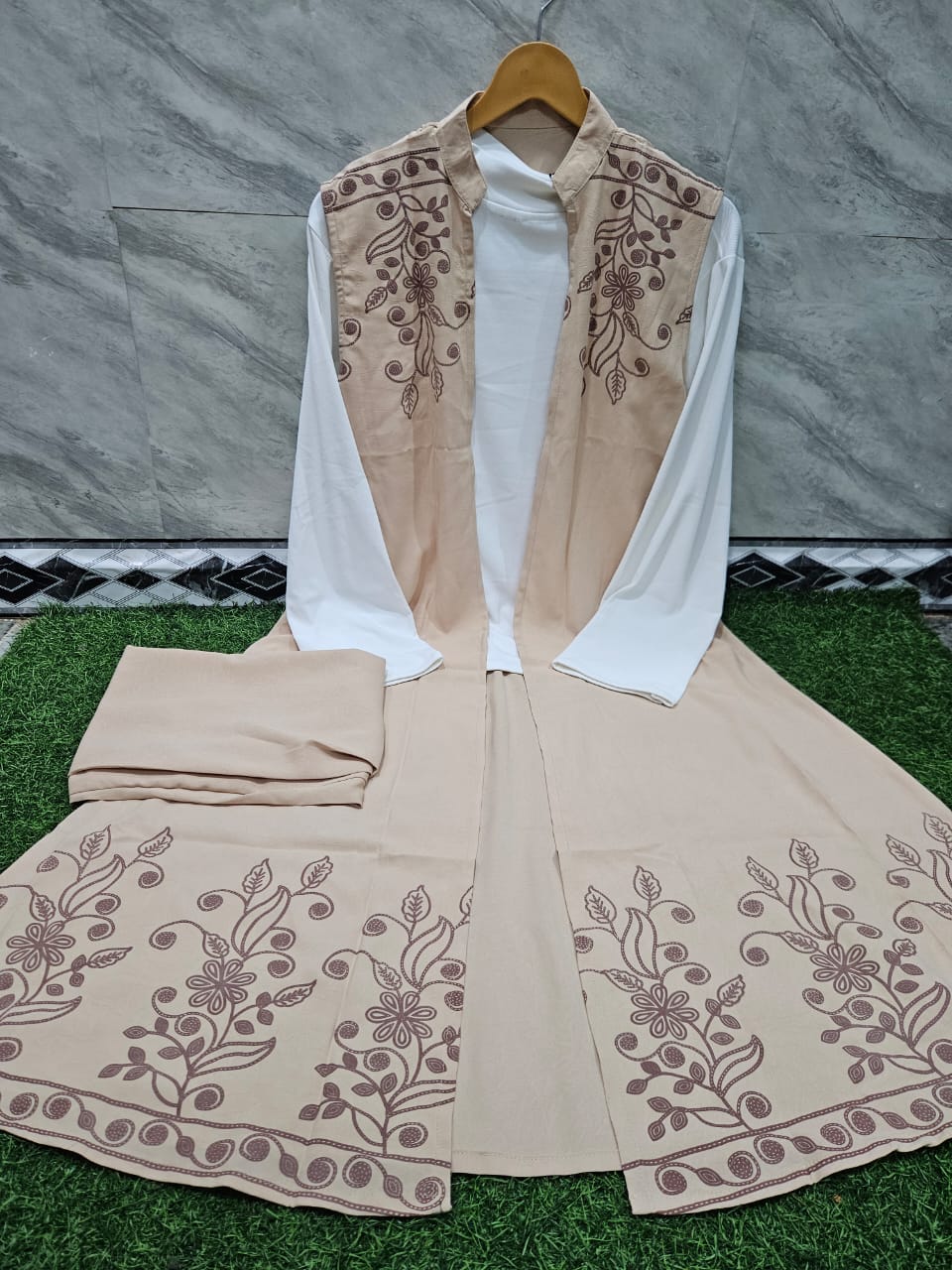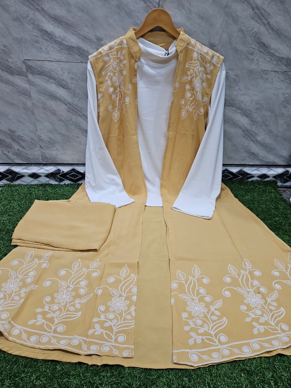 - ✔ Cord_al fa. Fabric: Heavy imported material Length Details: • T-shirt length: 25 inches • Koti (shrug) length: 44 inches • Pant length: 40 inches