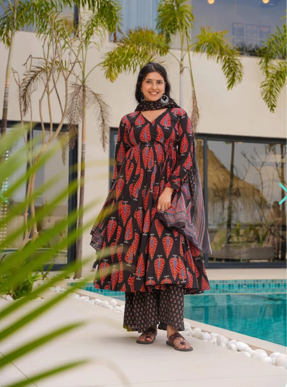 ✔ Size available*- *38(M),40(L),42(XL),* *44(XXL),46(XXXL)* *Material - cotton* *Look* *Anarkali* *Duptaa fabric -cotton malmal*